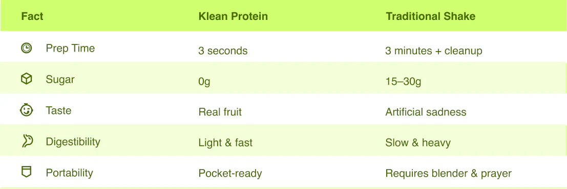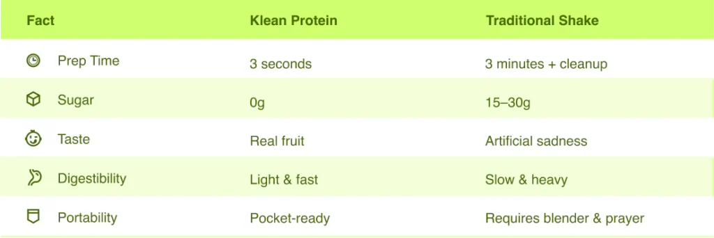 We didn’t reinvent protein — we just made it finally make sense. Each Klean Shot is packed with pure isolate protein, engineered for rapid absorption and zero digestive drama.